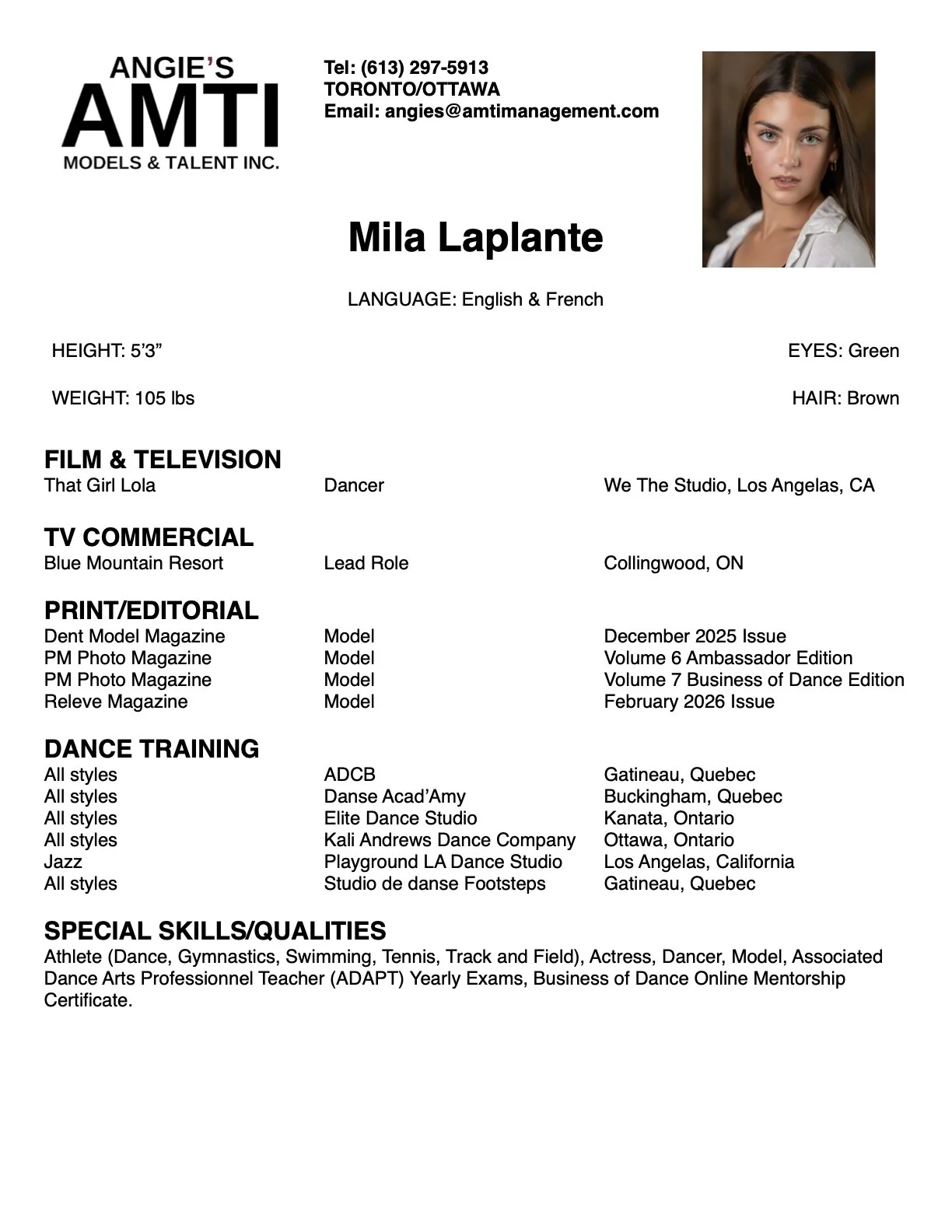 MILA LAPLANTE - ACTRESS | DANCER | MODEL